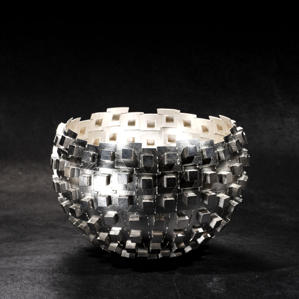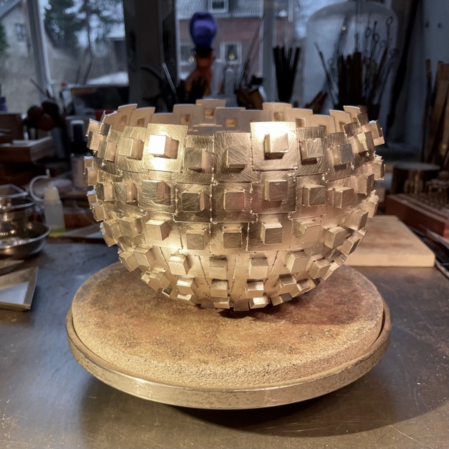 Svetsad silverskål med kvadratiska utskott.
