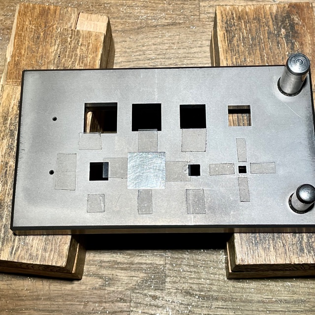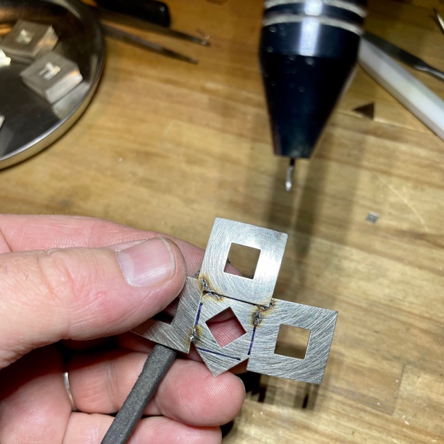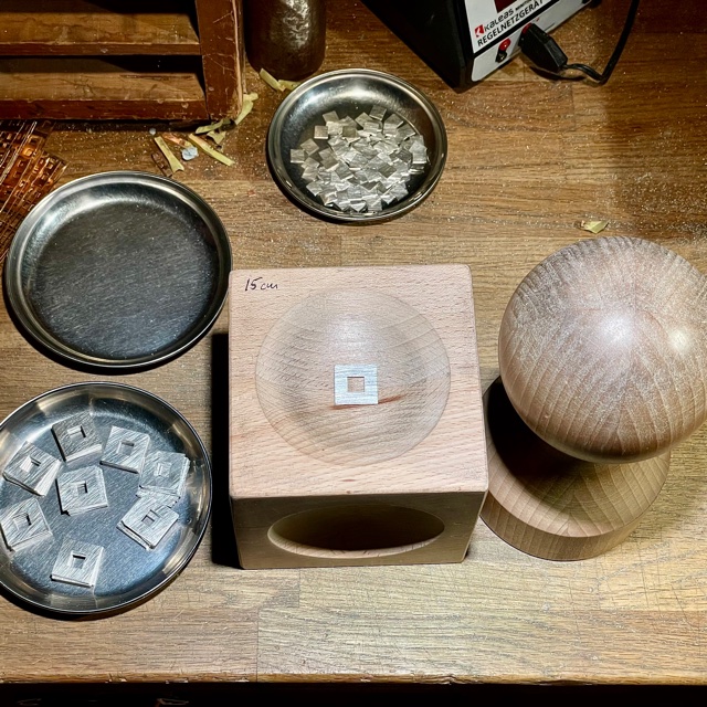 stansade ur de större kvadraterna – de ser nu ut som små silverlådor.