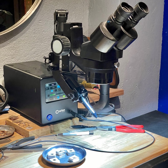Min svets – och mikroskopet som är ett måste för sådant här precisionsarbete.