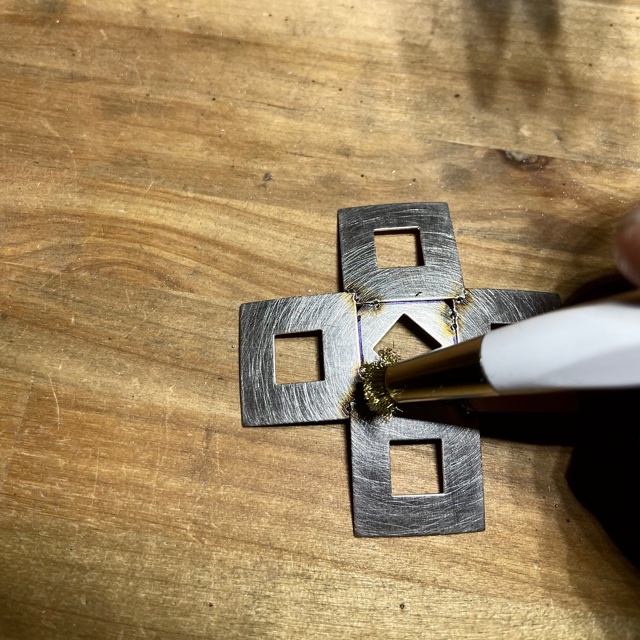 Efter varje svetsning kratsar jag bort all svart oxid