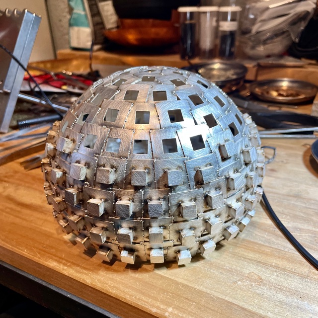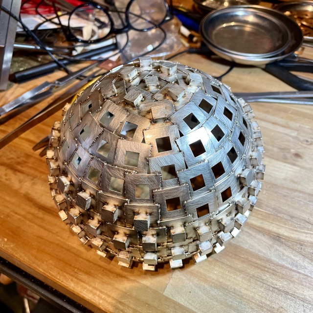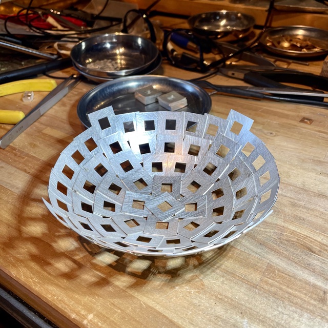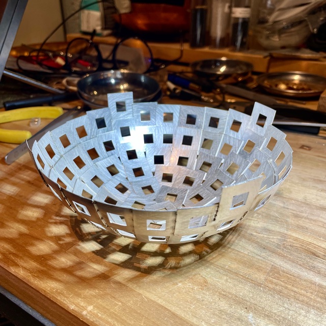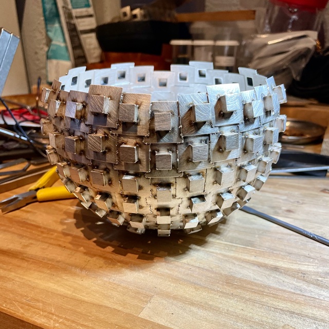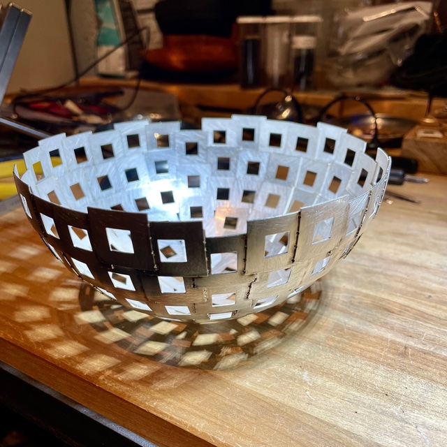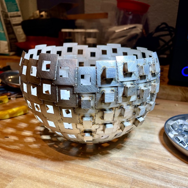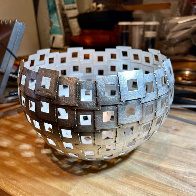 Svetspunkterna som håller ihop skålen syns som små prickar.