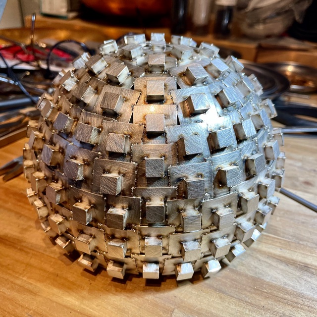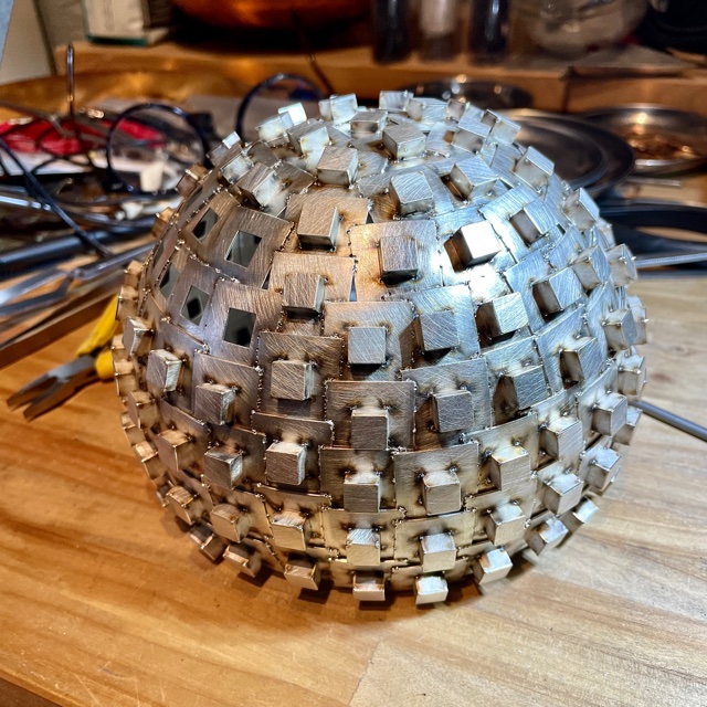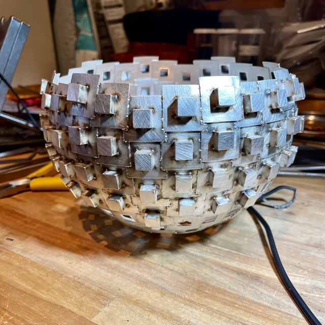 Lådorna svetsar jag fast i skålens hål.