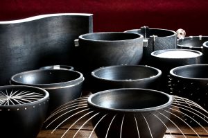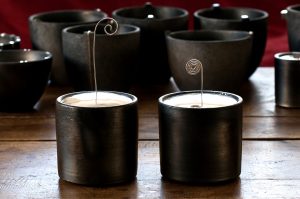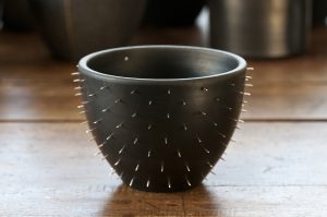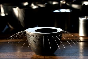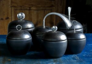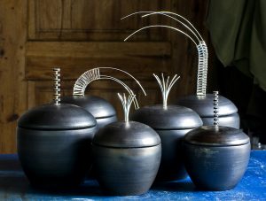 Samarbetet började med att keramikern Eva-Marie Kothe frågade om jag ville göra silverknoppar till några svartgodsburkar hon gjort till en utställning på Blås & Knåda. Samarbetet har fortsatt och vi har haft utställningar med våra gemensamma objekt på många ställen i landet.